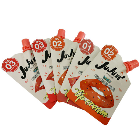 Custom Print Logo Brush Batom Spout Pouch Lip Cream Embalagem Sacos Mini Amostra Lip Gloss Sachets Embalagem Cosmética